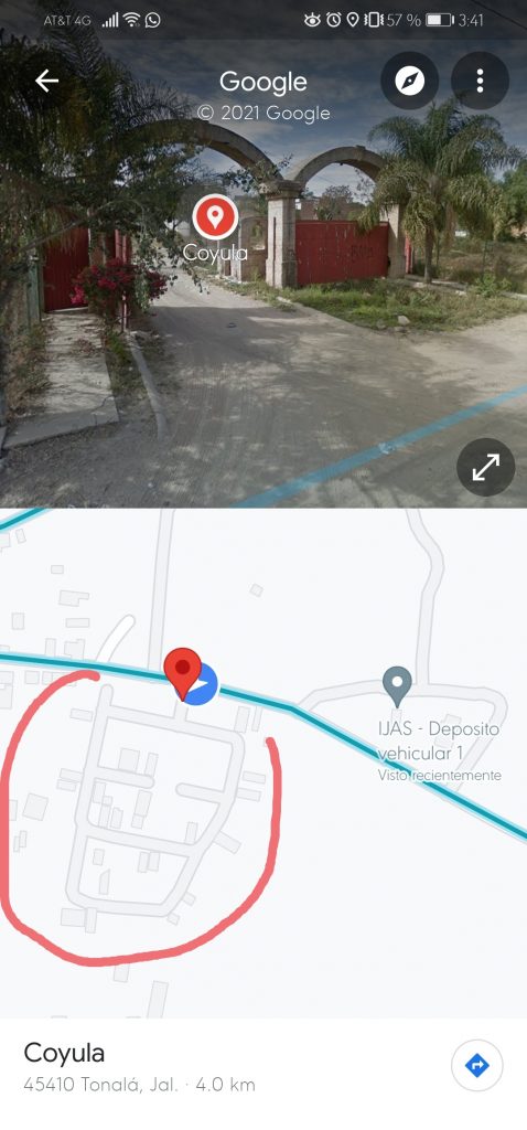 En colonia Coyula cerca de la gasera Tonalá, el panteón el Edén y el IJAS deposito vehicular 1.