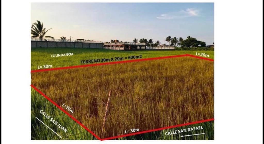 TERRENO RECTANGULAR EN ESQUINA CON DIMENSIONES 30mX20m = 600m2