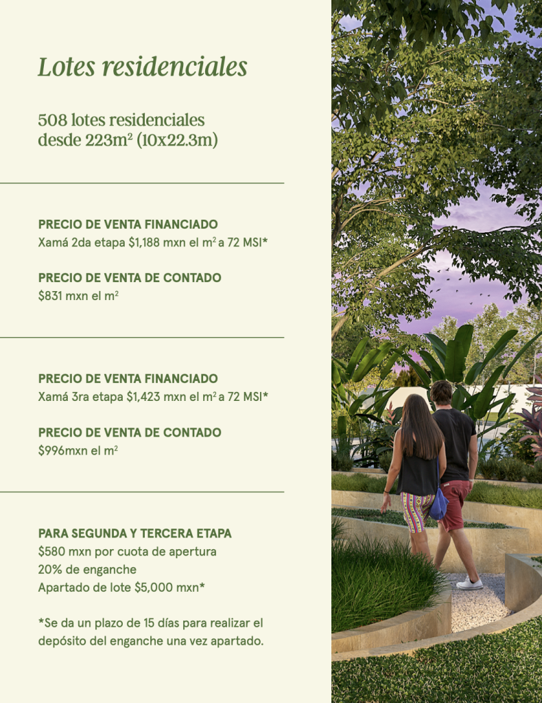 Con Un total de 508 lotes. Terrenos disponibles desde 223 m2. $1,188.43 x m2.